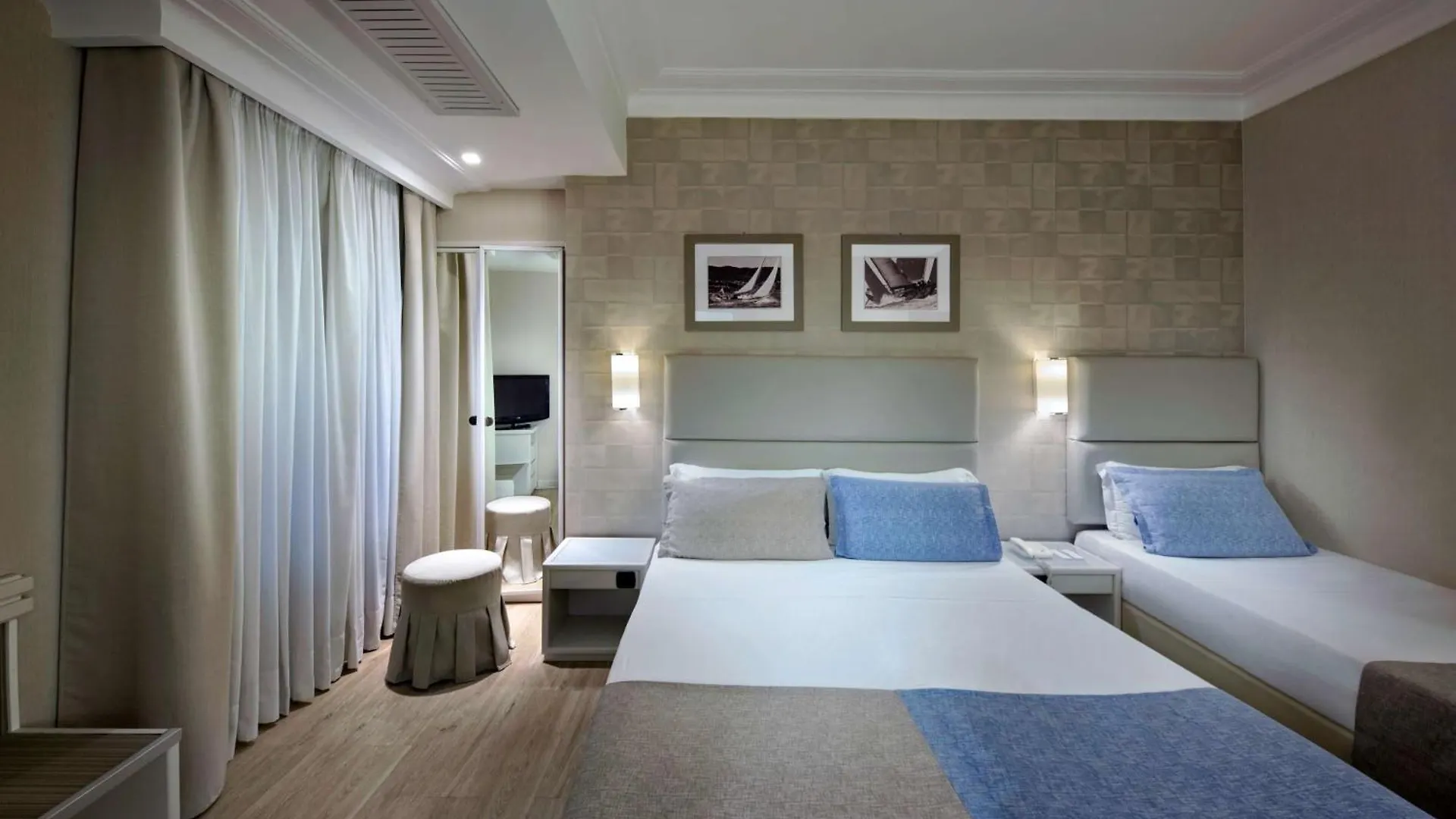 Il y a 72 chambres avec une climatisation. Certaines d'entre elles offrent une TV à écran plat avec des chaînes satellite et du Wi-Fi ainsi qu'un mini-frigo bar et une cafetière/théière. Elles sont également décorées de meubles élégants. Elles viennent avec un sèche-cheveux et une douche des équipements comme un sèche-cheveux et des pantoufles.